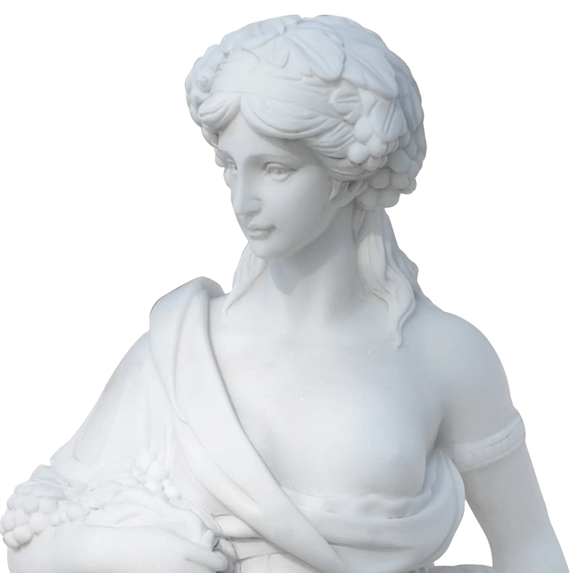 This marble harvest goddess statue is inspired by classical Roman art and symbolizes abundance, prosperity, and the beauty of nature. Hand carved from natural white marble, the sculpture features a graceful female figure holding elements associated with harvest and fertility.