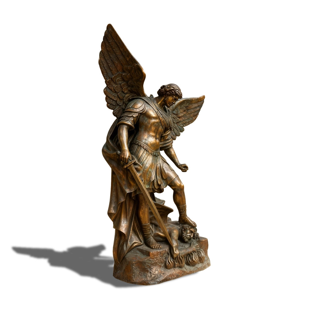 The VICTORY Antique Bronze Archangel Michael Sculpture is a powerful representation of faith, protection, and divine justice. Depicting Archangel Michael as a warrior of light, this sculpture symbolizes courage, righteousness, and spiritual strength. Crafted with classical proportions and detailed armor, the statue reflects traditional religious artistry enhanced by a rich antique bronze finish.