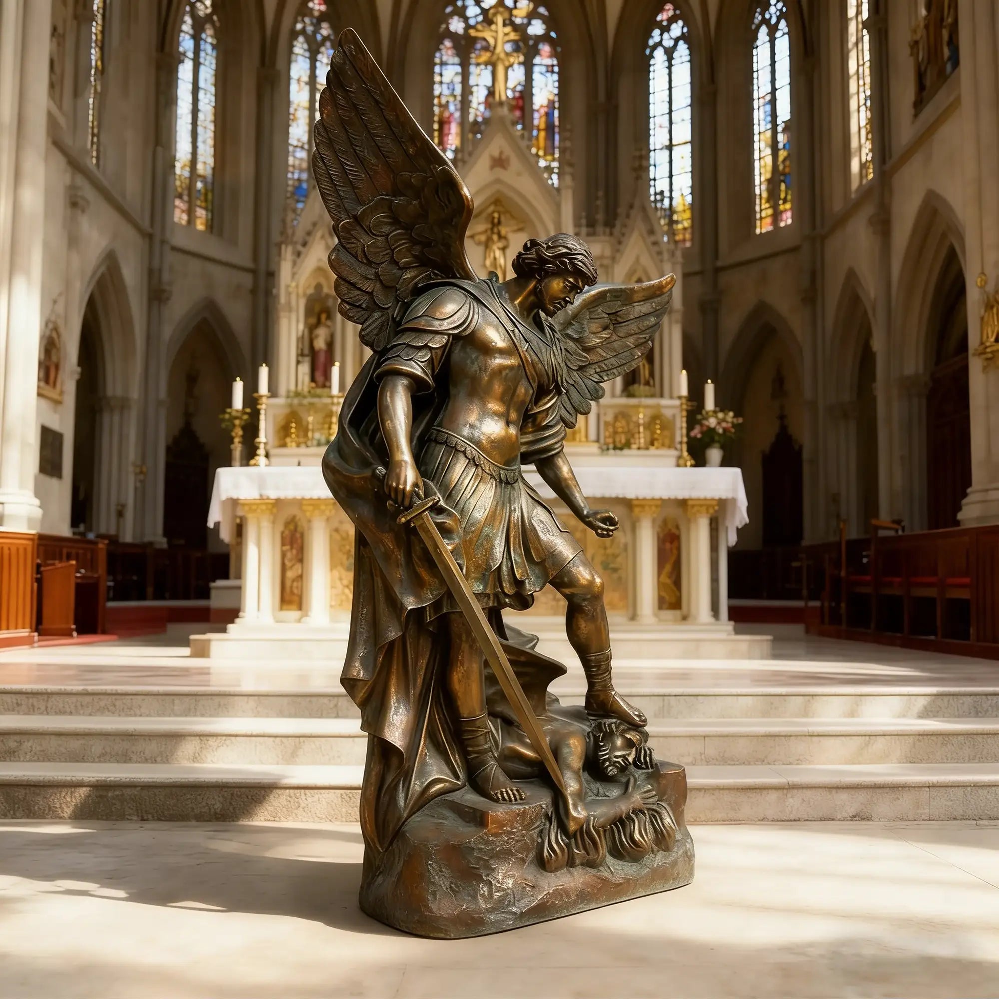 This Archangel Michael bronze statue is widely used in religious institutions, sacred exhibitions, heritage buildings, and private devotional spaces. The durable metal construction ensures longevity, while the timeless design aligns with traditional Christian iconography. Whether placed in a church sanctuary or a classical cultural space, this holy-themed sculpture enhances spiritual atmosphere and artistic significance, appealing to clergy, collectors of religious art, and institutions seeking dignified sacred décor.