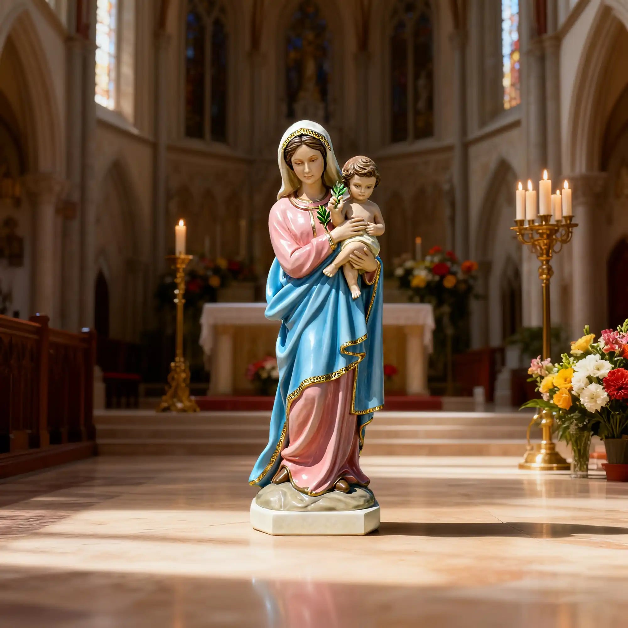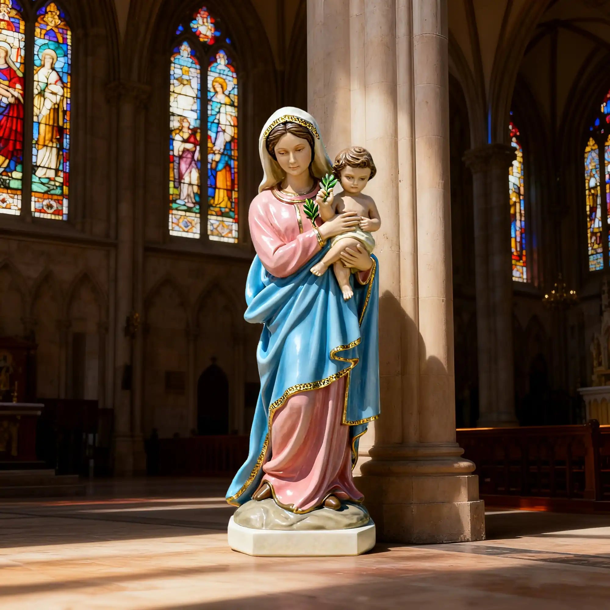 Its lightweight yet durable construction ensures excellent resistance to moisture, fading, and indoor environmental changes, making it suitable for altars, entrance halls, meditation corners, and Christian-themed interior décor. Perfect for clergy members, church designers, believers, and collectors, this fiberglass Virgin Mary sculpture brings a sense of calm spirituality and artistic elegance to any worship or home environment.