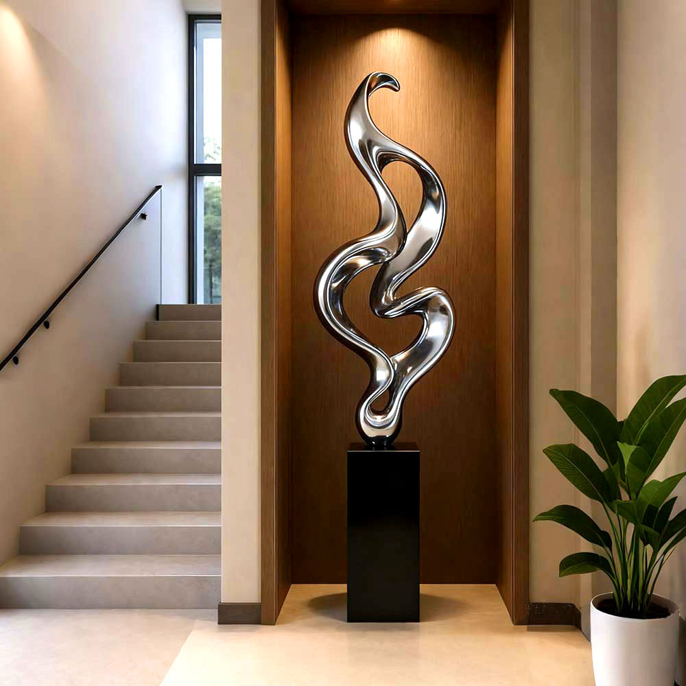 Ideal for indoor display, this contemporary metal sculpture is durable, corrosion-resistant, and requires minimal maintenance. Whether showcased in a luxury lobby, art gallery, or private residence, the VSS-05 stands as a statement of refinement and artistic innovation.