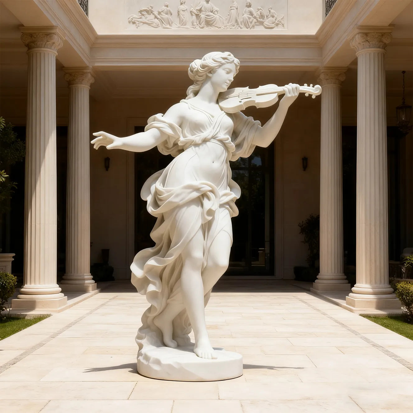 Upgrade your estate or home with this hand-carved marble woman violinist sculpture — a timeless tribute to classical music and feminine elegance. Featuring an artistically detailed female musician playing violin, this statue stands as a symbol of cultural sophistication and artistic beauty.