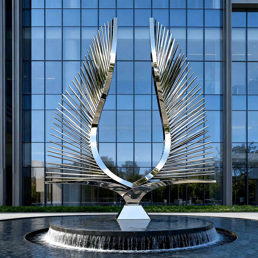 Standing tall with an elegant aerodynamic form, the double wing design creates a sense of movement and grace, reflecting the surrounding environment through its polished stainless surface. The VSS-07 embodies both artistic inspiration and modern craftsmanship, suitable for contemporary outdoor spaces, public monuments, and luxury estate gardens.