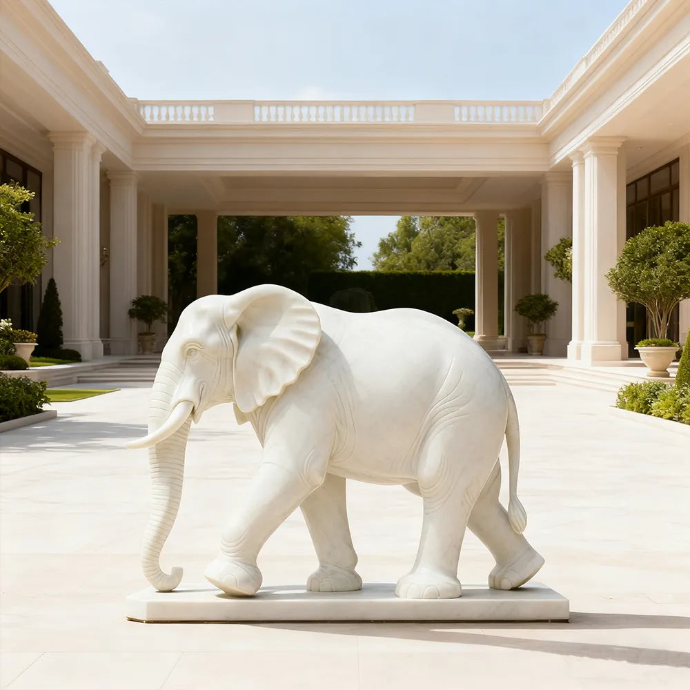 The VICTORY VSM-04 Marble Elephant Statue is a grand symbol of strength, wisdom, and good fortune. Hand-carved from premium natural marble, this large outdoor elephant sculpture features exquisite detailing—from its textured skin to its majestic posture—making it a remarkable centerpiece for luxury estates, villa entrances, resort landscapes, temples, and cultural parks.